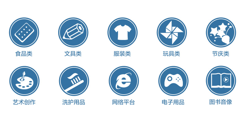 4、玩具類:拼圖圖案;徽章圖案;泡泡貼圖案;抱枕圖案;橡皮泥包裝盒圖案;兒童泳圈圖案;